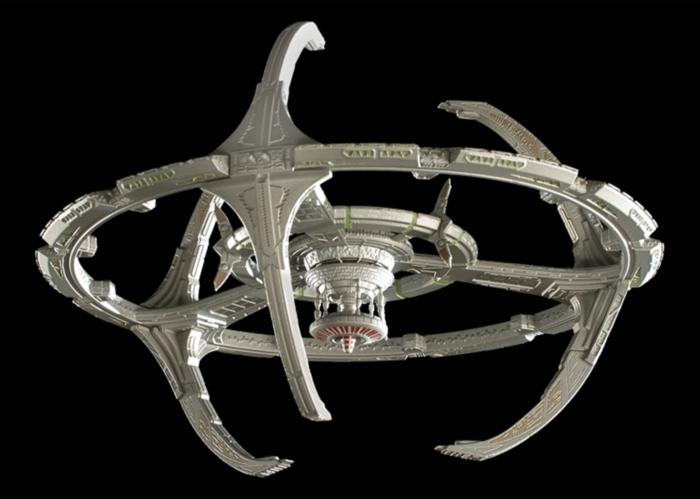 巨大な可変翼とスマートなフォルムを備えたバード・オブ・プレイは、その特徴的な塗装も相まって、スタートレックシリーズに登場する宇宙船の中でもひときわ見分けがつきやすい。 |